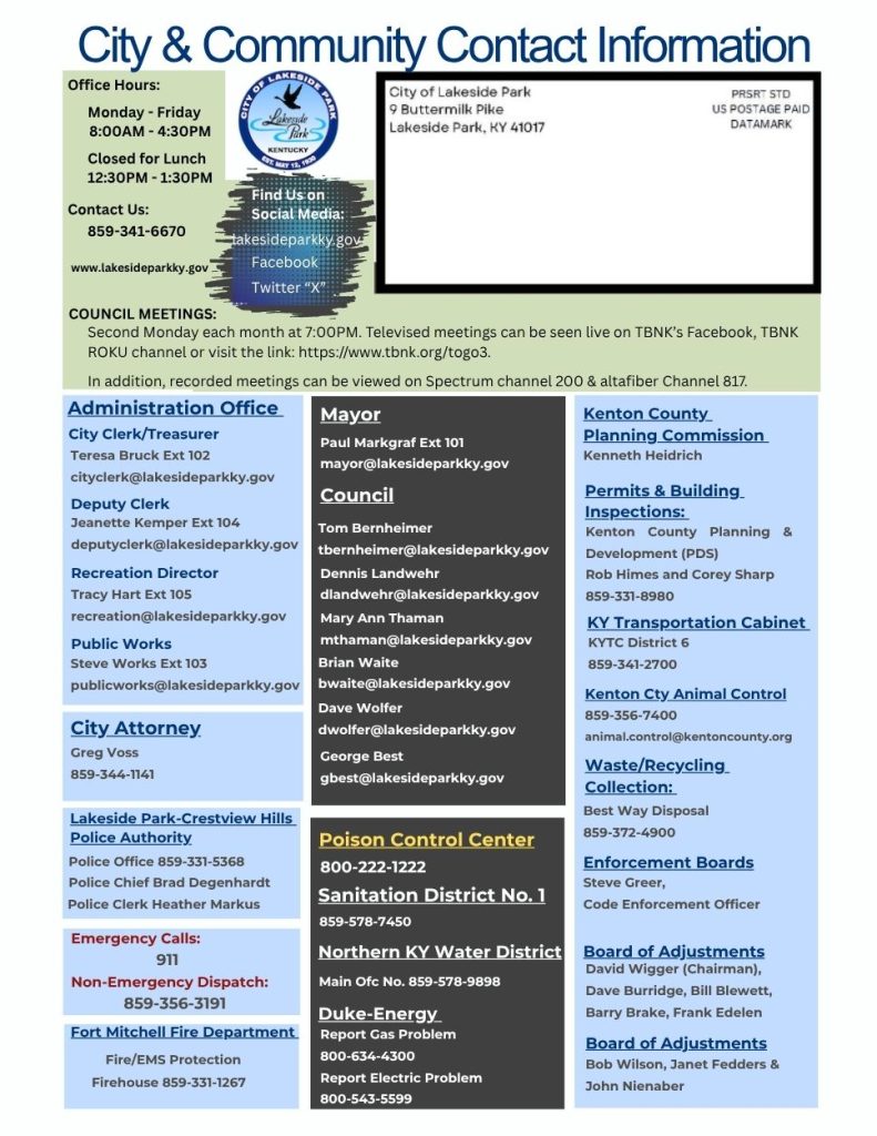 Copyright © 2023 City of Lakeside Park, KY | Developed by Foster Technology Group | Cookie Policy | Privacy Policy